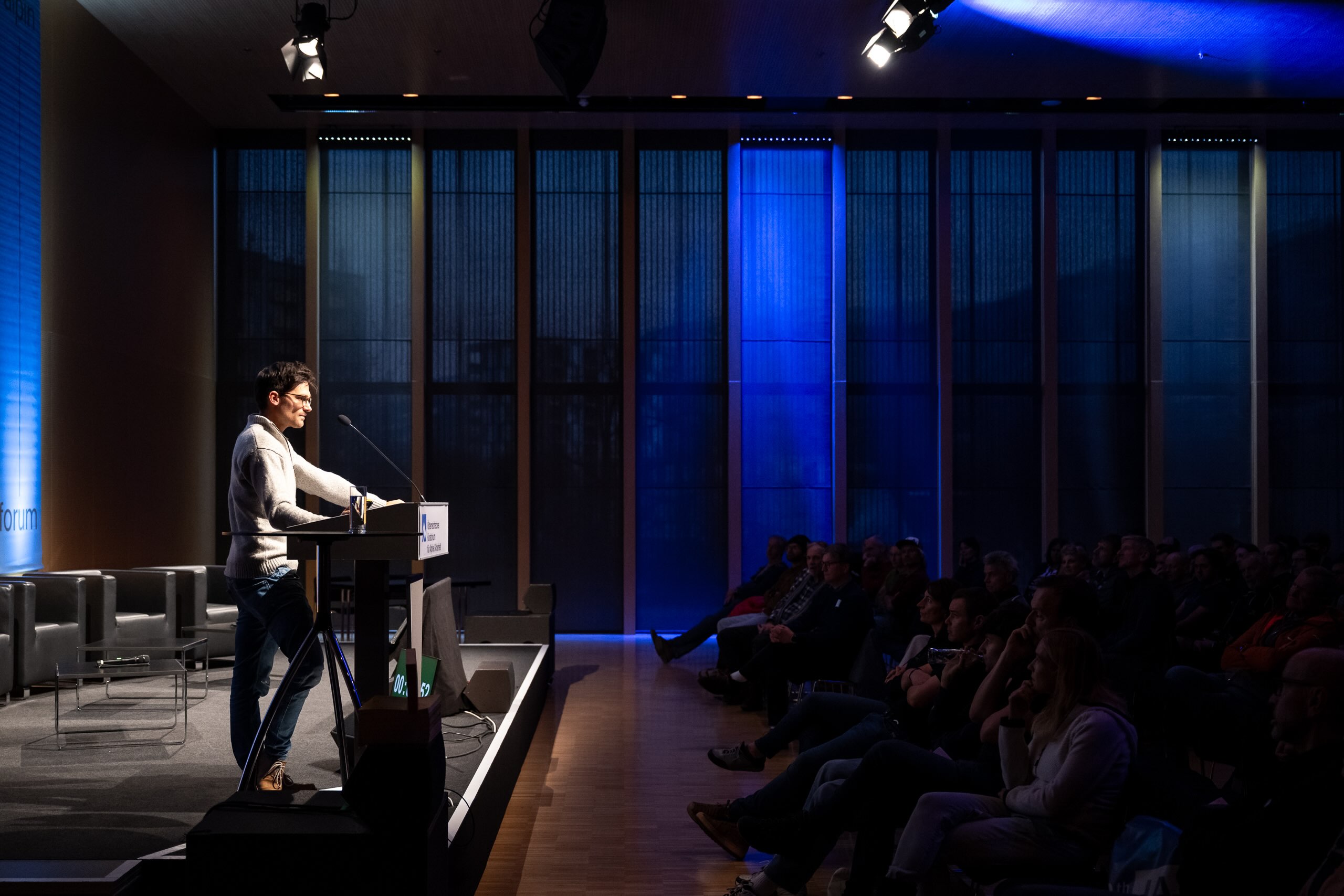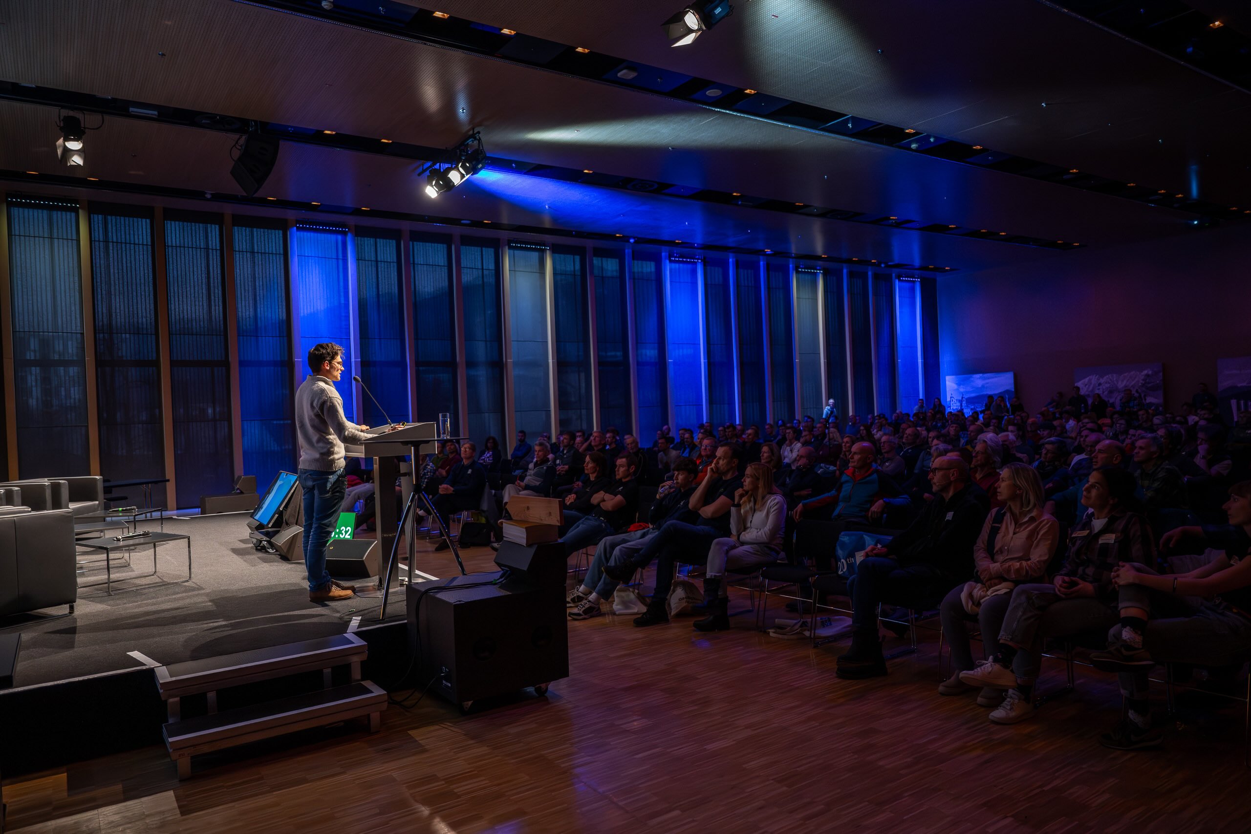 Gespannte Zuschauer:innen während des Vortrags von Stephan Birkmaier im Rahmen des Alpinforums 2025.
